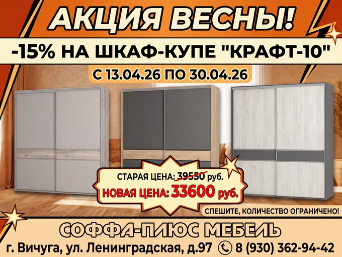 Шкаф‑купе «Крафт‑10» — скидка 15%!